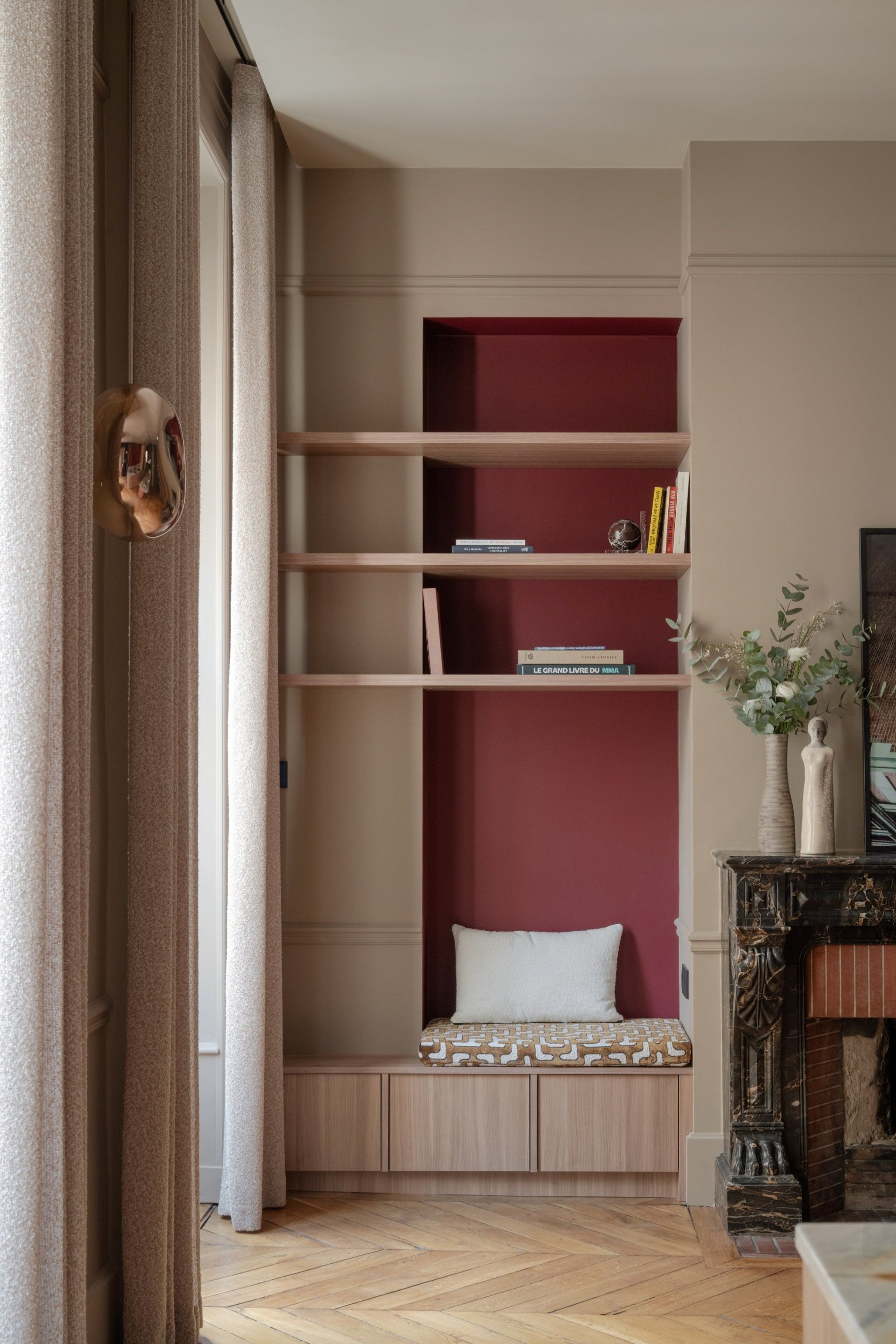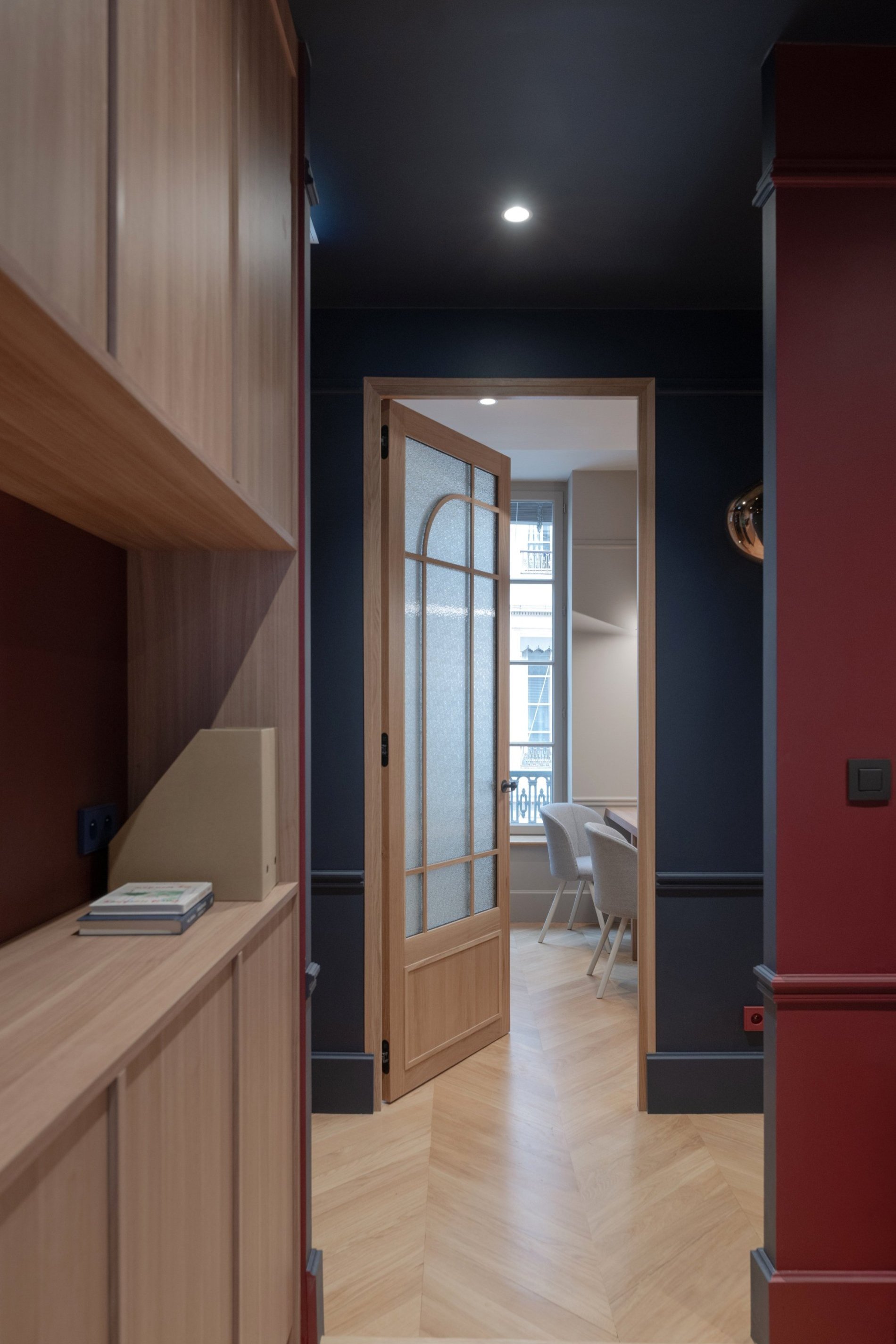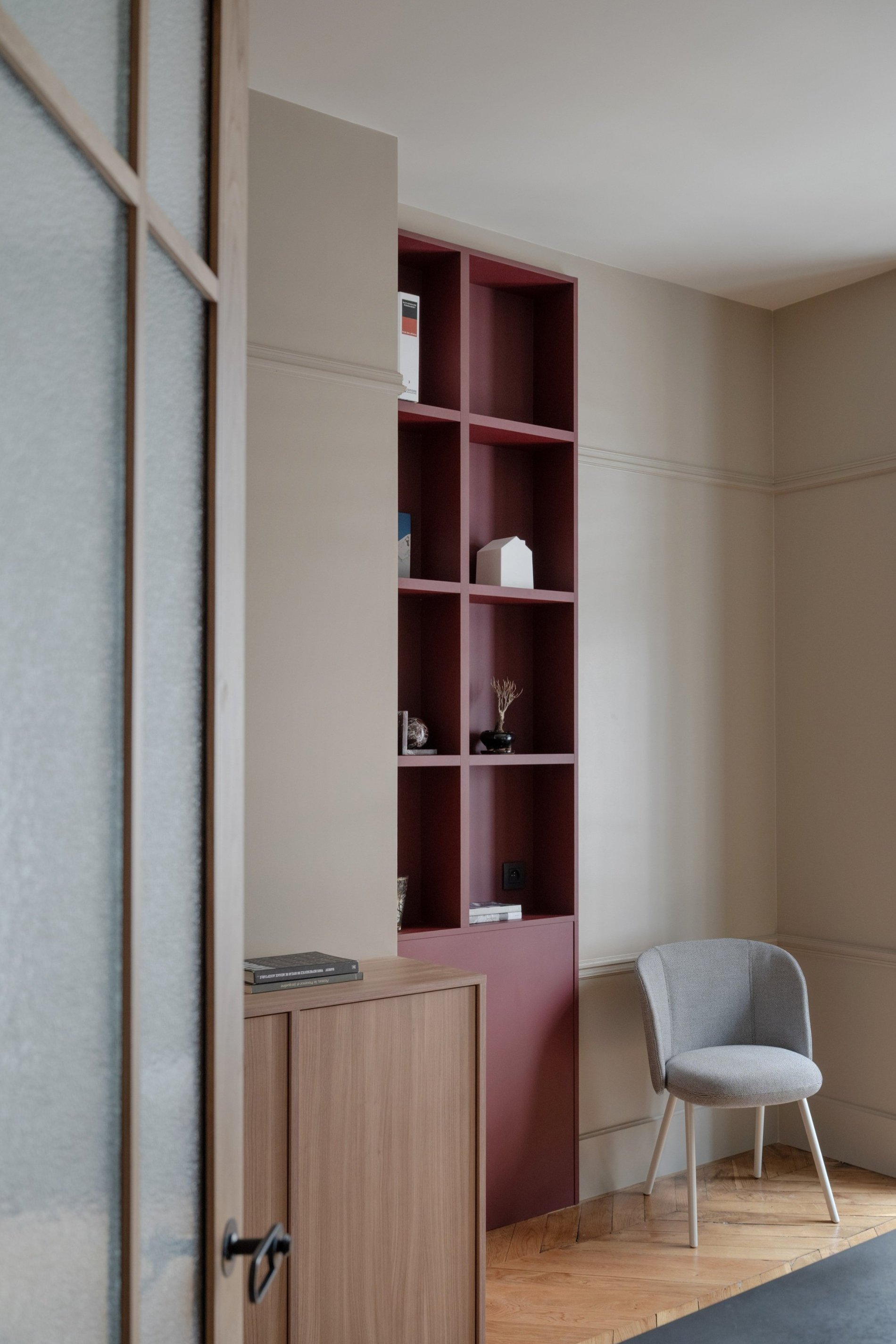 Le mobilier est dessiné et réalisé en effet noyer blond, reconnu pour la finesse de son veinage, ses nuances chaleureuses et son élégance intemporelle.