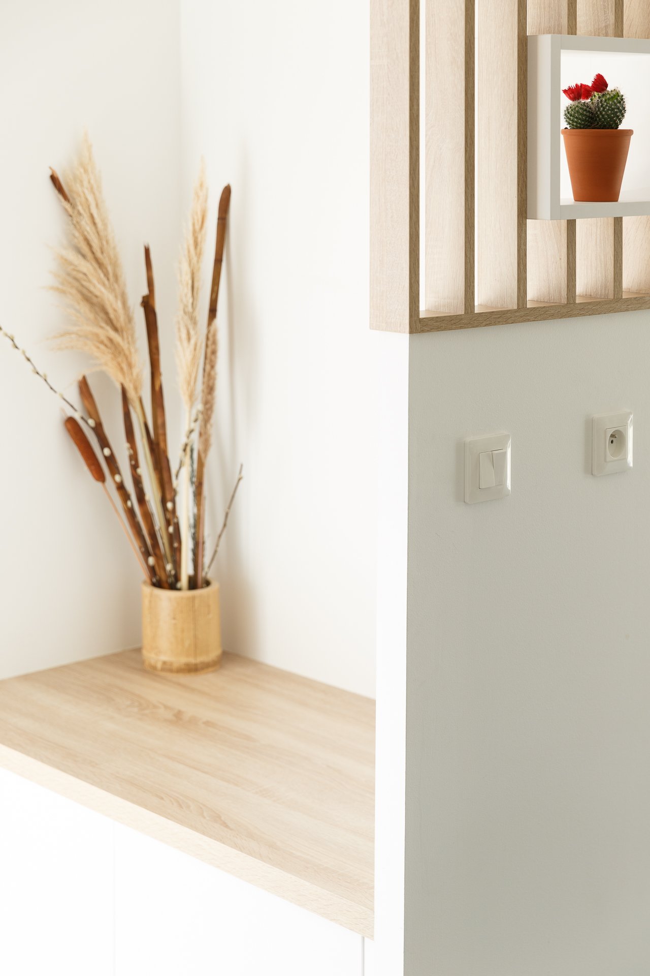La mode étant aux espaces de vie très ouverts, l'entrée de cette maison se fait sans transition mais reste douce et lumineuse.